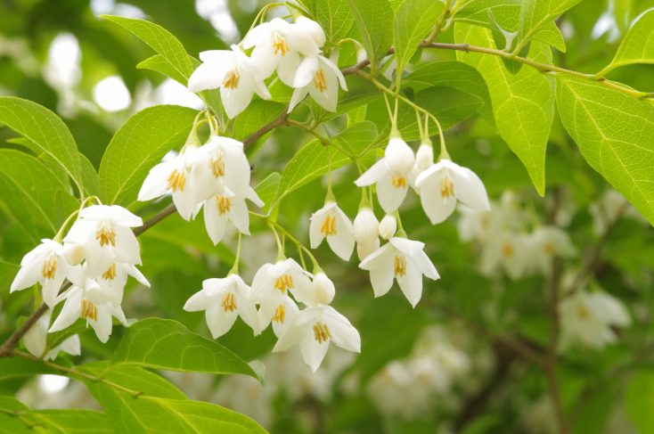 エゴノキは5月頃に白い小さな花が枝にぶら下がるように咲きます。