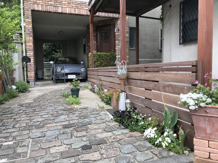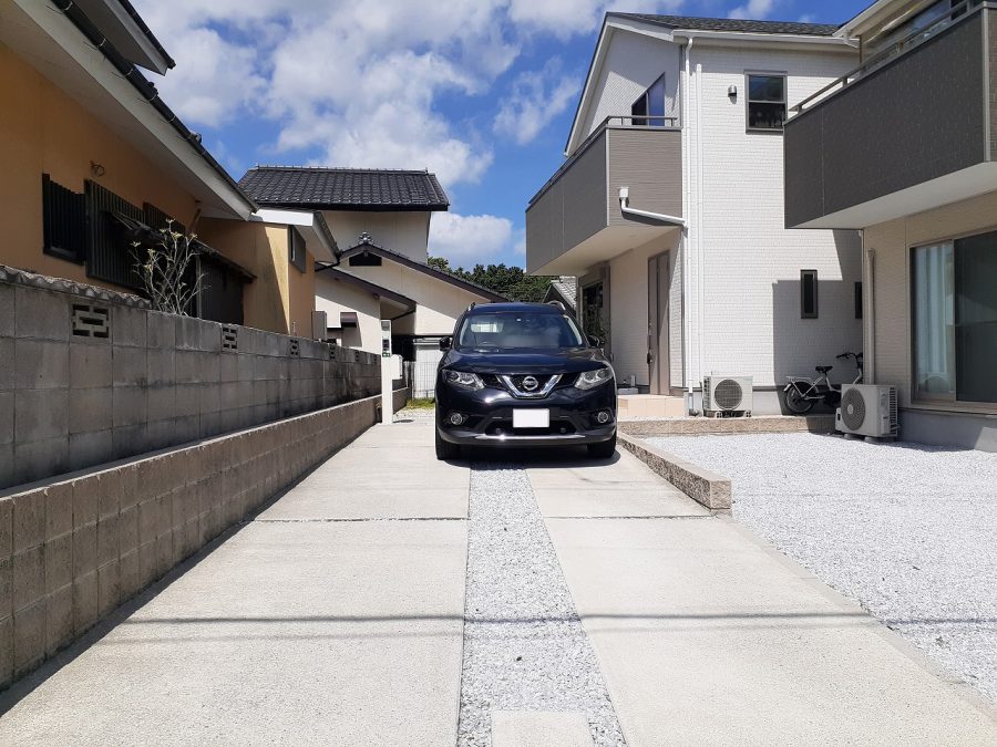 駐車する部分と、車が乗らないアプローチ部分を分けることで、見た目に変化が出るだけでなく、コストを抑えつつ実用性も確保できます。
