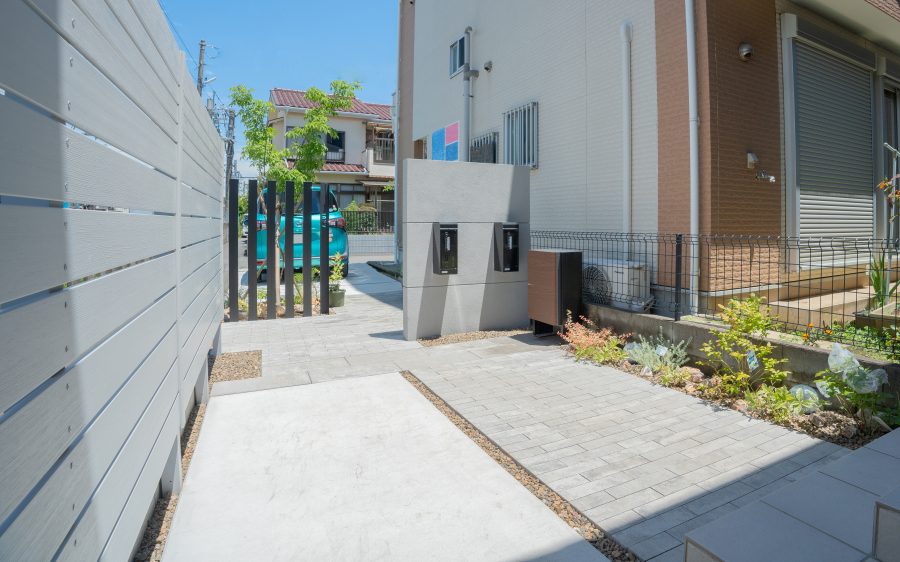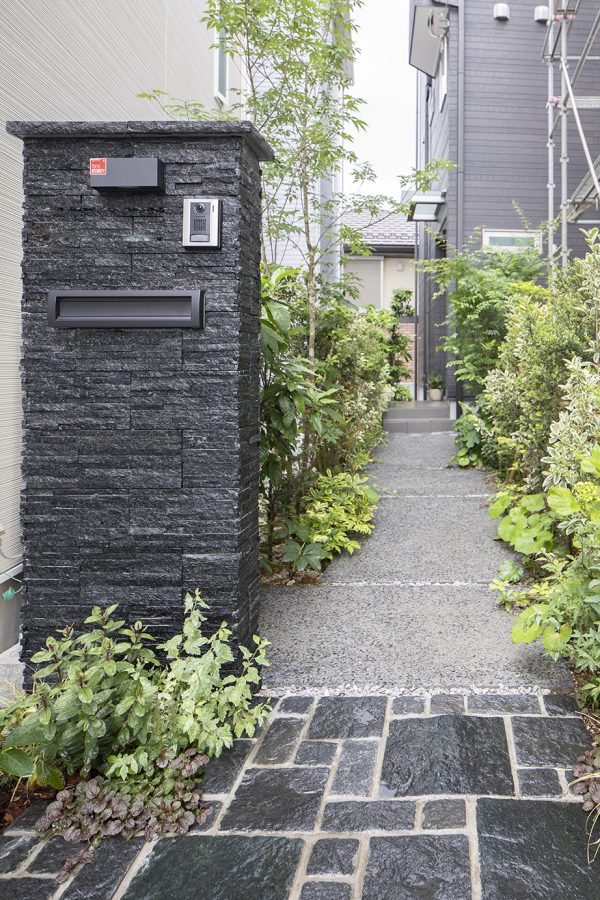 道路側から見てわかる位置にある表札は来客や宅配業者の方にもやさしく、郵便や宅配物は玄関近くの方が受け取りが便利です。
