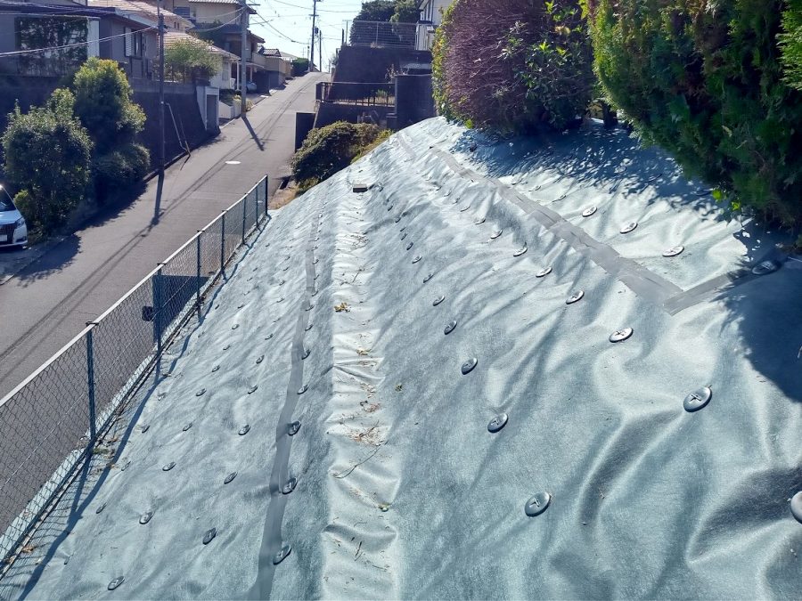 「法面の場所が奥まっていて、人目につきにくい」「お手入れしづらい環境」という場合は、防草シート仕上げも選択肢のひとつです。