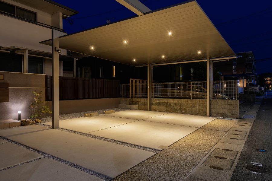 暗くなりがちなカーポートまわりを明るくするだけでも、