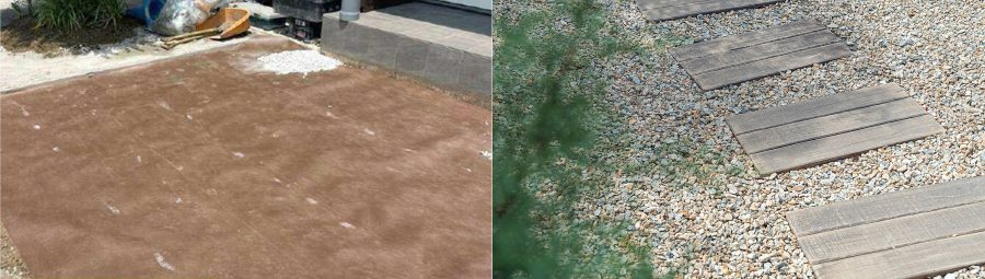 ① 防草シート+砂利で雑草を抑制