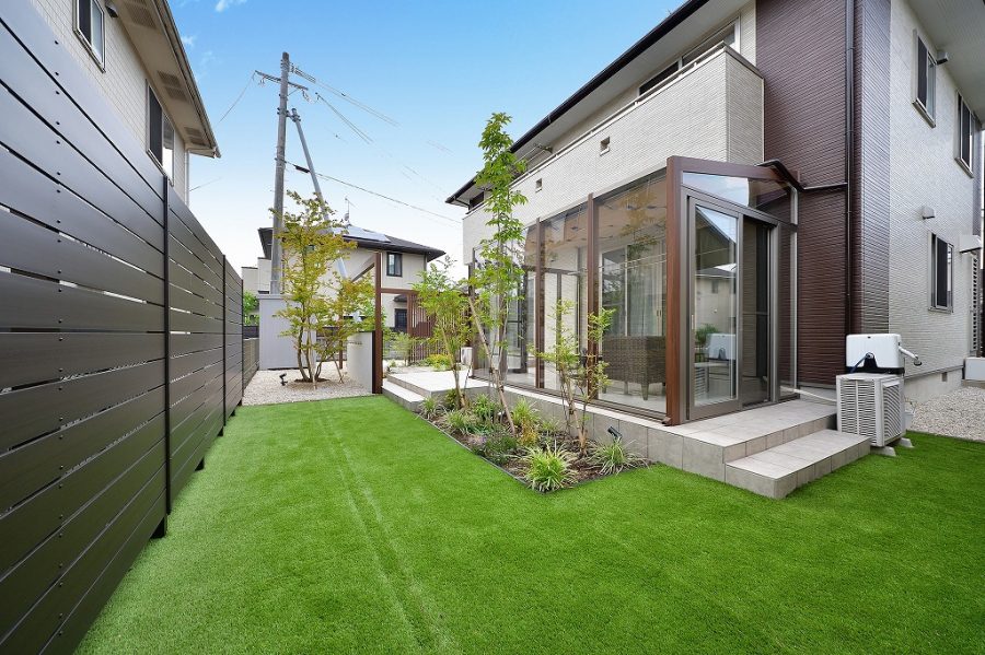 天然芝の代わりに人工芝を採用すれば、