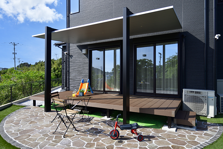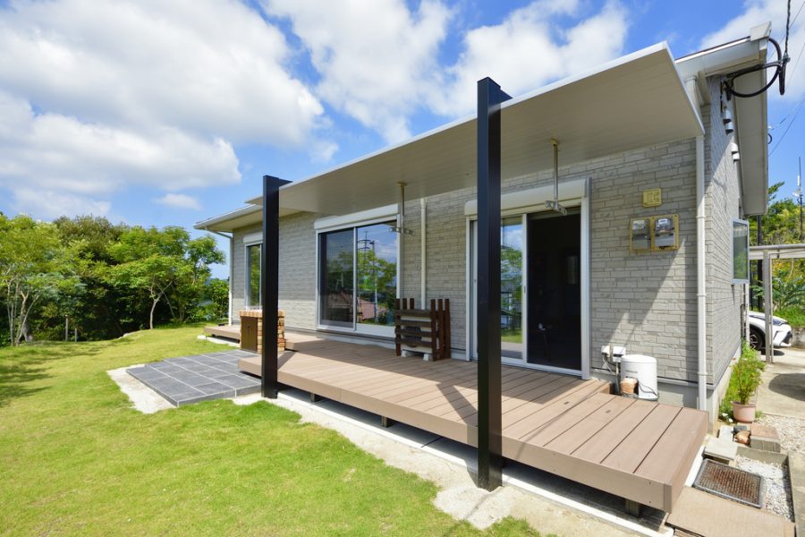 ウッドデッキは特に直射日光が当たると表面温度が上がり、裸足で歩いたり座ったりできない熱さになります。テラス屋根やシェードなどで日かげを作って過ごしやすい環境を整えましょう。日よけをつけることで家の中に入る日射しを軽減し、室温の上昇を抑制する効果もあります。電気代の節約にもつながるかもしれませんね。
