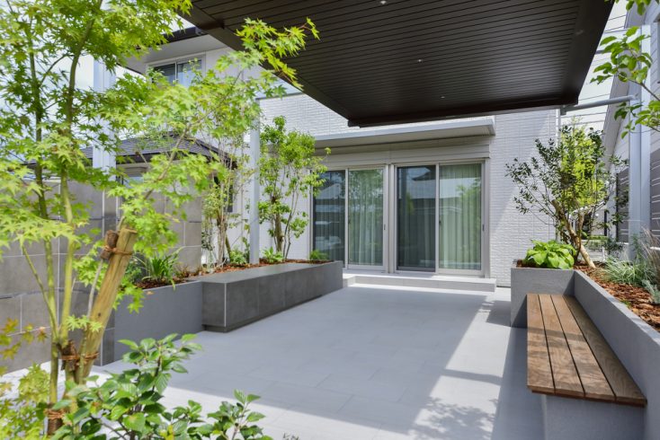 お庭も色味や素材を混ぜすぎずにすっきりまとめて、素敵なベンチやファニチャーでくつろげる空間を整えましょう。