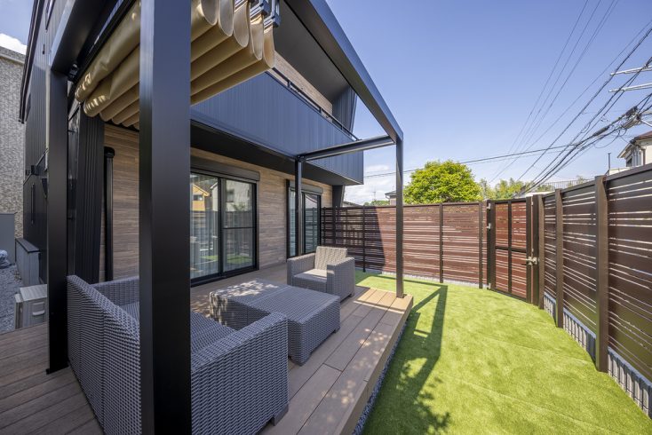 日常的に洗濯物を外に干す方はテラス屋根など屋根材がある物に日よけをオプションでつけることもできるので、屋根材がいるかどうかもご検討ください。
