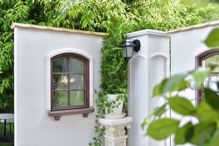 塗り壁の場合レンガの間の目地から雨垂れが流れやすいので、上部に汚れが溜まらないよう掃いたりお水をかけるなどこまめにメンテナンスしてあげると良いですよ。