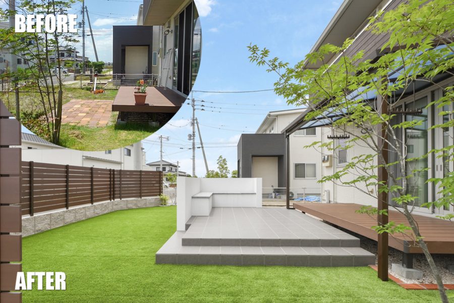 新築時、とりあえずウッドデッキやタイルテラスを作ったけれど日差しが強くてテラスを活用できていない…という方にも、後付けできるおしゃれなテラスSCがおすすめ。雨や日差しを遮りお庭で快適に過ごすことができるようになります。