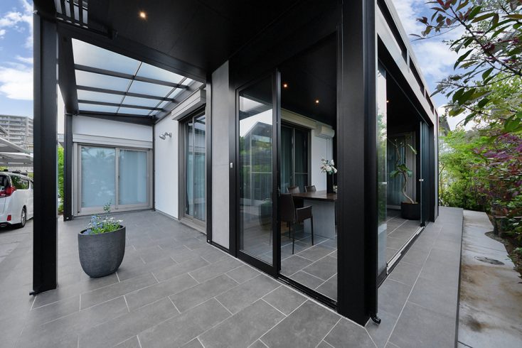 お庭も同様にフレームやスクリーン、ルーフ、ウォールを組み合わせて様々な敷地環境に合うオリジナルな空間を作ることができます。