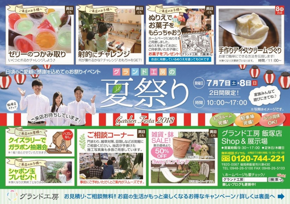 グランド工房の夏祭り garden festa 2018開催! 開催店舗・日時はこちら News