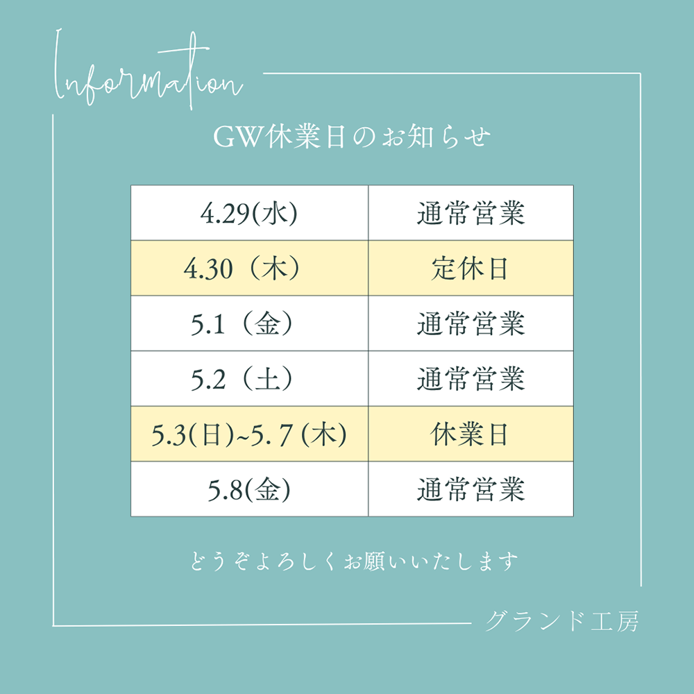 休業期間 2026年5月3日(日)〜5月7日(木)