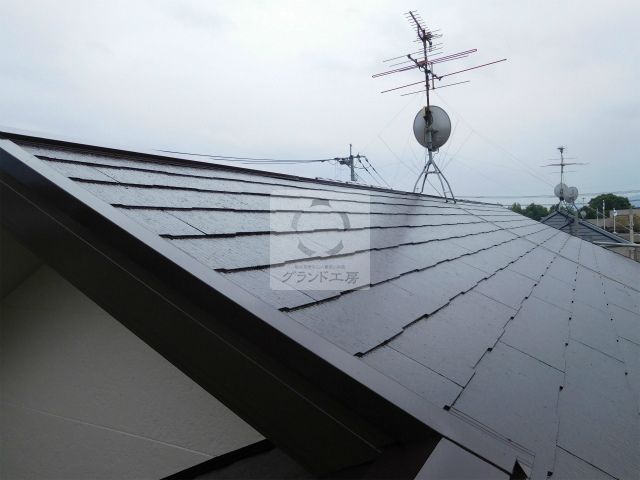 外壁塗装のご相談から、困っていた自転車と洗濯スペースを新たに設置しました。1Fと2Fの色を変えることにより、ソフトな印象の外壁の色合いとなりました。同時に設置したテラス屋根のシャイングレーが、玄関扉とうまく馴染んで、建物全体が、調和しています。