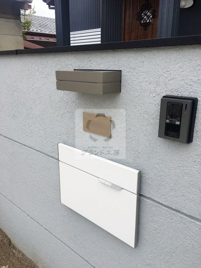 シンプルになりすぎないように、門塀にスリットを入れたり、真鍮の表札を付けたりしました。