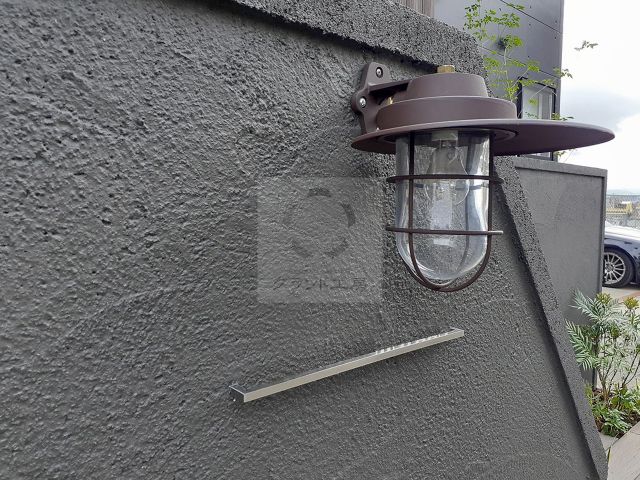 外壁塗装と外構リフォームの工事をしました。外壁の色をブラックに変えたい、門周りをナチュラルでありながらシックな外構に作り変えたいとご依頼頂きました。特徴的な玄関入り口の形をモチーフに門壁をデザイン。モノトーンでシックな外構へ変わりました。はじめは施主様の考えとして大きな樹木を植える予定はありませんでしたが、インパクトのある大きなモミジと、リビングから見える坪庭には細くて幹肌が特徴的なアオダモをご提案させて頂きました。アプローチは施主様こだわりのTOYO工業『レイルスリーパー』を採用。木彫がリアルなコンクリート平板はナチュラル感を演出。シェード付きマリンライトもとてもオシャレです。