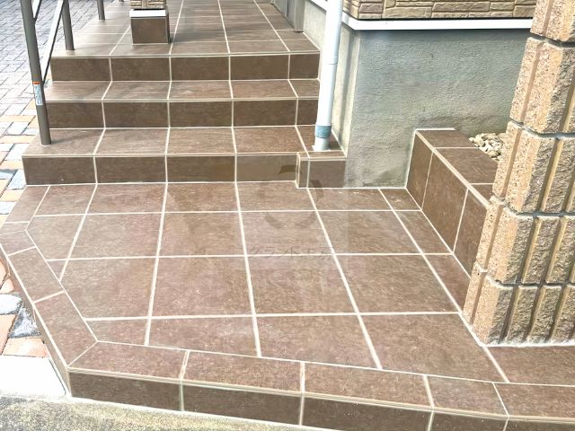もともとあった門塀が、運転時の視界や駐車に影響を与えていました。そこで、これらのお悩みを解消するため、玄関ポーチの改修工事を行いました。駐車しやすくするためにポーチの角を落とし、門塀を撤去しました。また、ポーチのタイルを大きめのサイズに張り替え、空間に広がりを持たせました。さらに、転落防止のために手すりも設置しています。その結果、視界が大幅に改善され、駐車が非常に楽になったとご評価をいただいています。