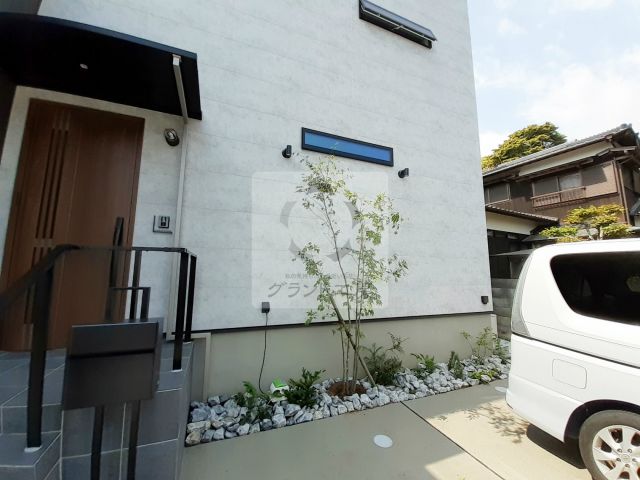 雑木風の植物とグリ石でロックガーデン風に仕上げました。