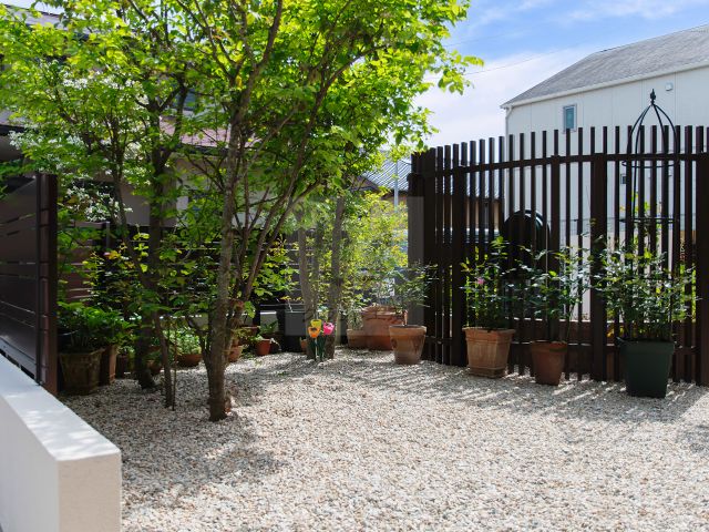 生垣の撤去と境界ブロックの積み増しをきっかけに、セミクローズ外構の全体リフォームをご依頼いただきました。門塀とアプローチは、曲線デザインに大胆に一新し、レンガや自然石を使って明るく柔らかな雰囲気を演出。また、生垣を撤去してブロックの内側に目隠しフェンスを設置し、スッキリとした印象に仕上げ、メリハリのある外構となりました。