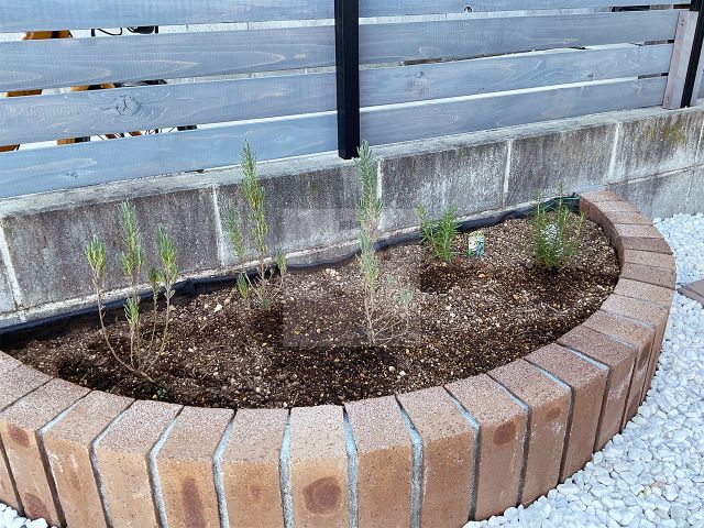 新居に移られてから手つかずだった花壇に、樹木とハーブで素敵な空間を作りたいとのご相談をいただきました。そこで、さまざまな種類のハーブを植え、華やかな花壇が完成しました。ハーブはモリモリ育つので、成長しやすいよう隙間を空けて植えています。また、ガーデンポットも新たに仲間入りしました!植栽は、お料理が大好きな奥様と旦那様が、食用でありながら美しい花が咲く種類を選んでいらっしゃいました。春が待ち遠しくなるような、魅力的なハーブ花壇が完成しました。