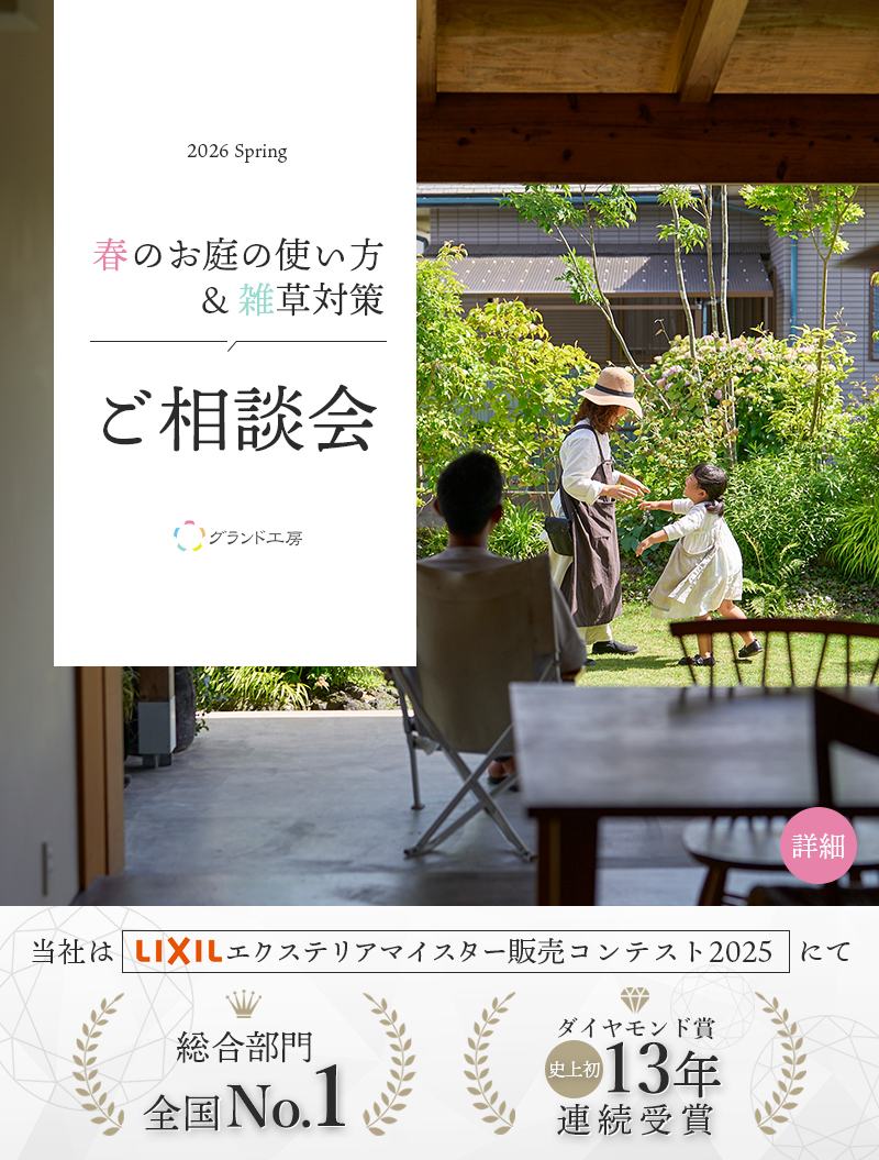 お世話になりました。今回、グランド工房さんにお願いして本当によかったと思います。担当営業の方がまめに連絡してくれたので、不安に思う事がなく職人さんとの連携もスムーズだったからこそ、工事がとても早く完了して驚きました。内山さんに色々ご提案いただき大変満足な庭が完成し感謝申し上げます。