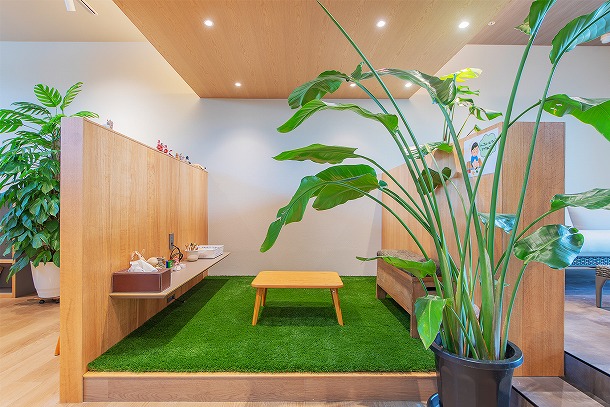 八幡店は、キッズルームと駐車場を完備した、ファミリー層にも利用しやすい外構・エクステリアの相談スペースです。 お子さま連れでも落ち着いて打ち合わせができ、土日祝日も営業しているため、ご家族そろって将来の暮らしを考えながら外構・お庭づくりをご相談いただけます。