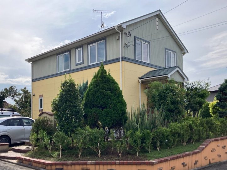 塗装前は、1階部分が明るいイエローに対し2階部分が彩度と明度が低い色調になっていたため