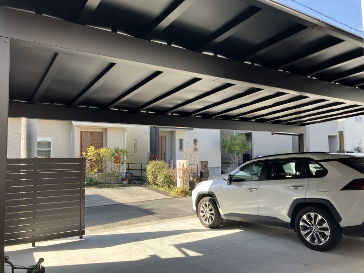 ブラックポリカで冬場の霜や、黄砂の汚れ、夏場もひんやりしたカーポートスペースへ