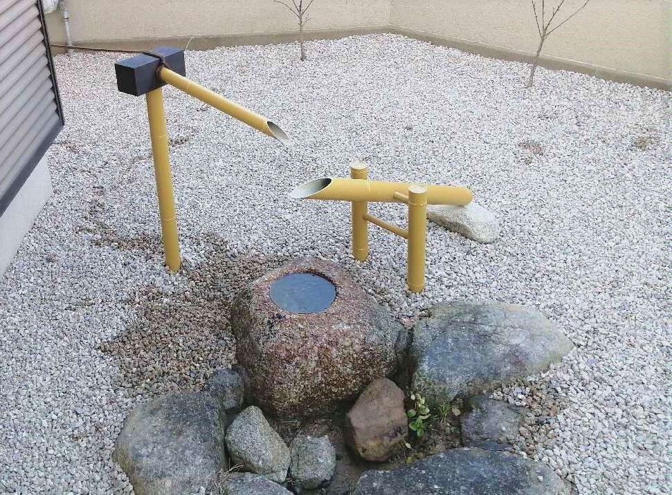そこに人工の竹材で作られた筧と鹿威しを設置しました。