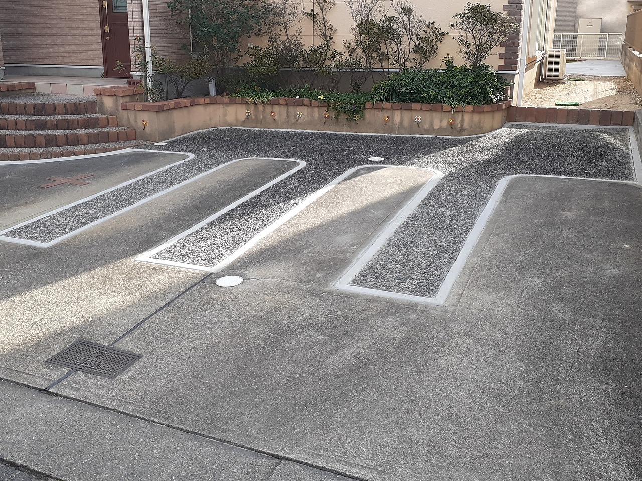 前面の駐車場の隙間も合わせてコンクリート敷きを施工させていただきました。