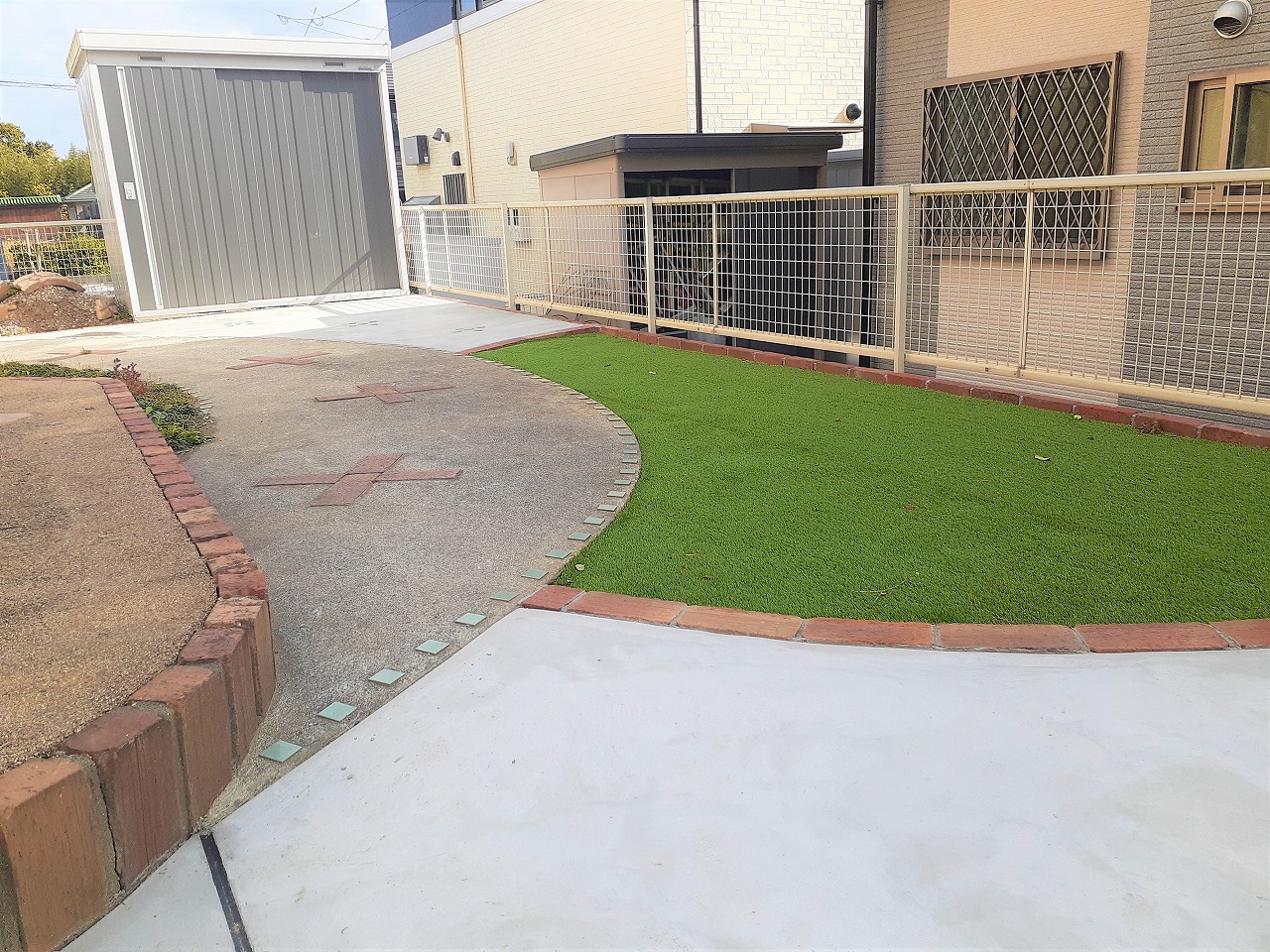人工芝と新規のコンクリート打ちの色の対比がたいへん綺麗です( `ー´)ノ