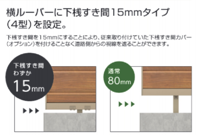 なんと最小隙間 ❛15mm❜ まで可能です。下からの視線も大事なところ。そんな立地には、お勧めの商品です。