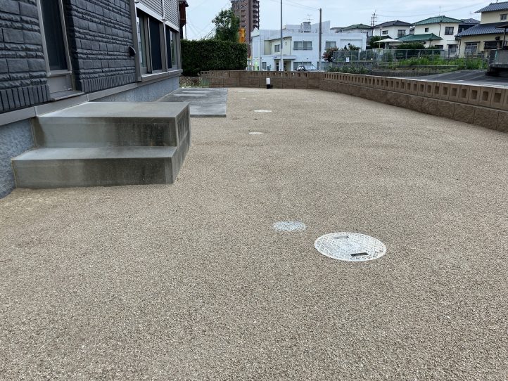 お庭は綺麗ですが、わんちゃんが歩くには足が汚れてしまいます。