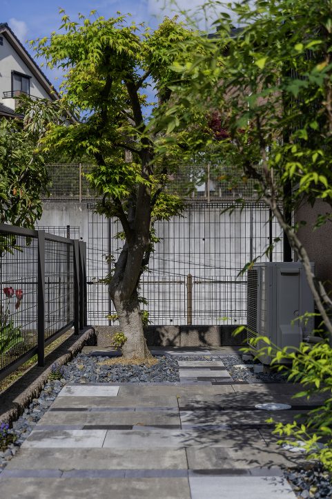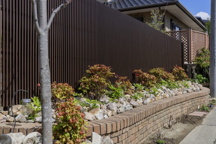 道路から通る人にも、楽しんでもらえる縦ラインのフェンスは、植物への日差しも十分通します。