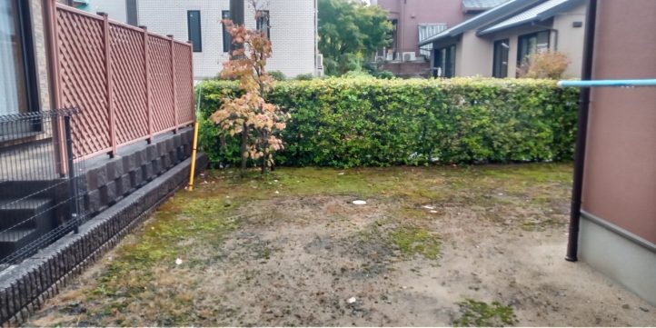 日当たりや水はけも気になっていたよう。日当たりはいい立地ですが、お庭に出ると『お手入れしなくては』と綺麗好きなK様。少しずつ、メンテナンスの少ないお庭目指して今回お手伝いしました。