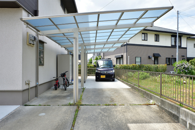 既存の駐車場の上には、カーポートとサイクルポートとして使えるエフルージュプラスを施工。