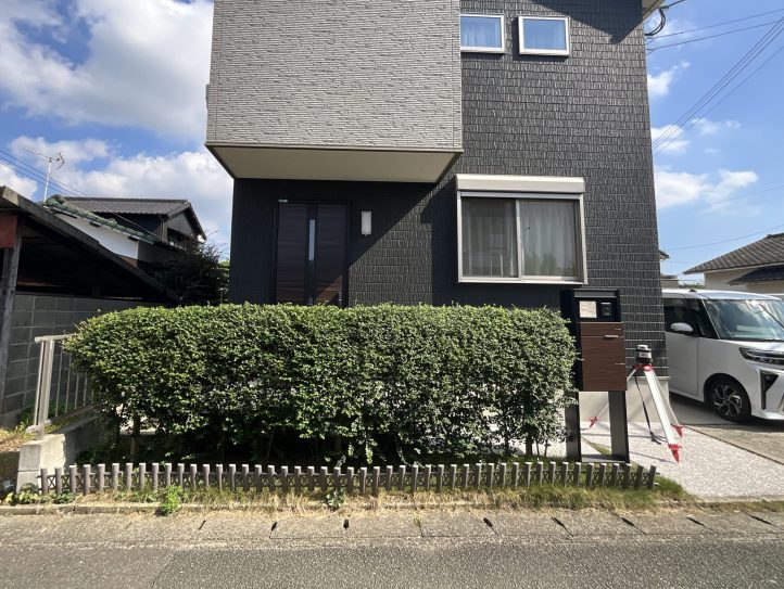 「生垣のメンテナスが大変」「玄関を開けた際に道路からの視線が筒抜けになってしまうため隠したい」とご相談いただきました。