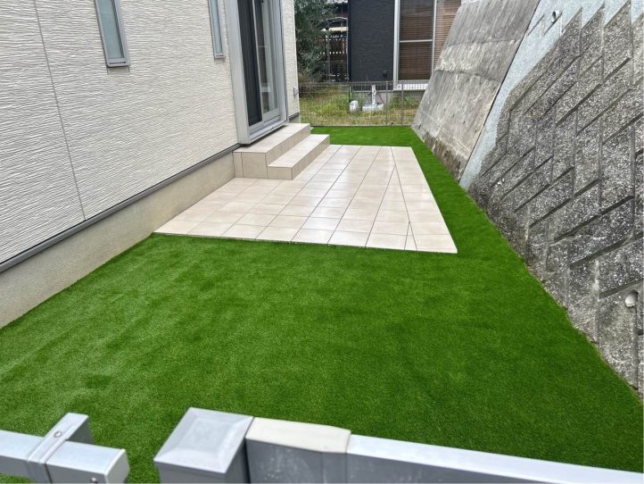 今回は人工芝とタイルテラスの工事をお手伝いさせていただきました!