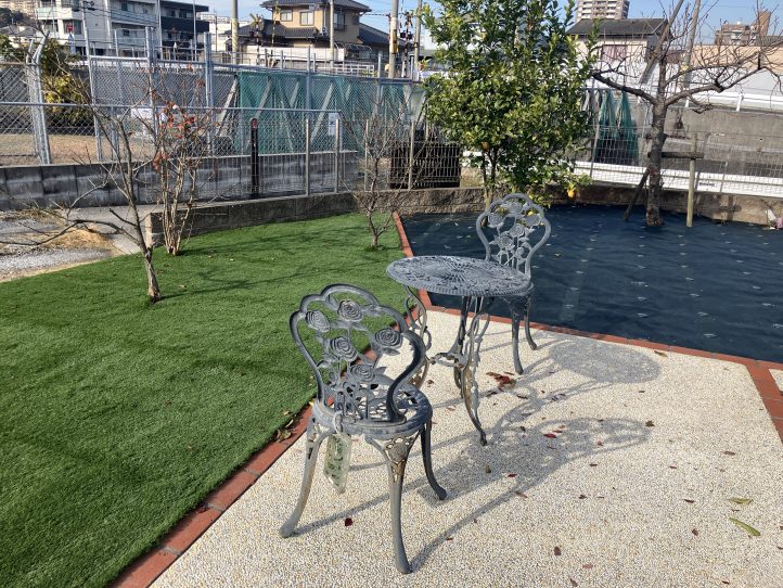 人工芝を敷いてあげるだけで、ナチュラルな雰囲気を出すことができるので