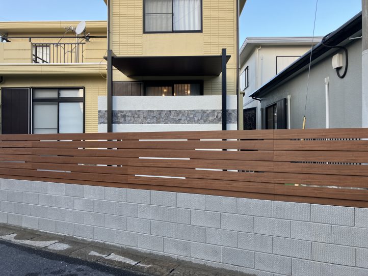 フェンスは板だけでなく柱までも木目調の素材を採用しました。