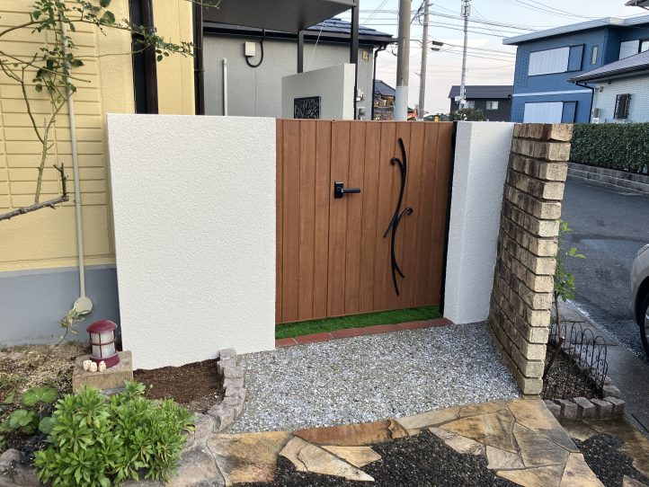 通路にはワンちゃんが外に出ないように門扉を施工しました!