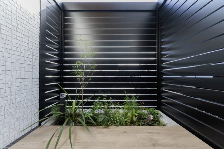 リビングの窓前をしっかりと囲ってあげることでプライベート空間を演出していますね。
