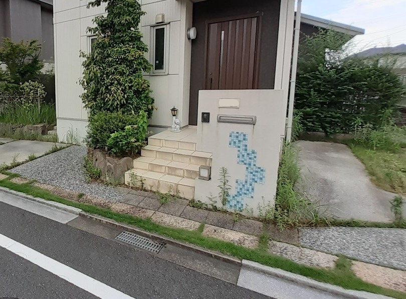 汚れが付きやすいポスト・インターホン付近にモザイクタイルを貼って目立たないようにしています!