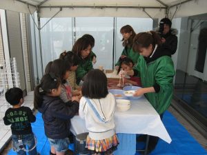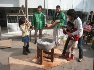 来てくれたこどもたちも元気いっぱいもちつき体験をしました