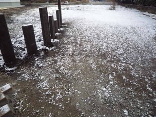 新築外構でお世話になっている現場 も薄っすら雪化粧です。