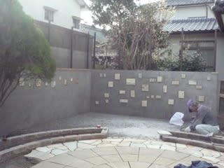 前から思っていたことなのですが、左官さんの石はりの作業って、