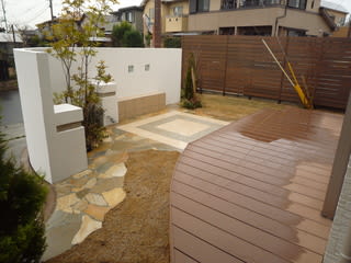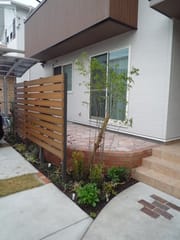T様邸です。既設の目隠しフェンスの周りに植栽と石貼りのテラスを施工しました