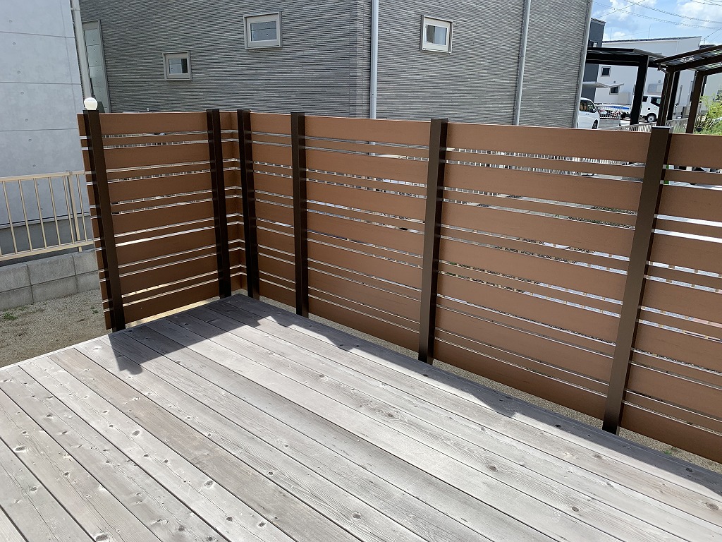 広々としたウッドデッキがあったのですが、周りから丸見え状態でなかなか活用できていないということで、Eウッドスタイルフェンスを設置しました。