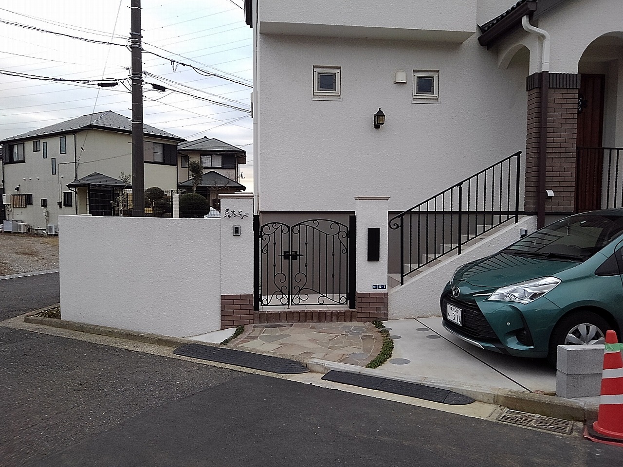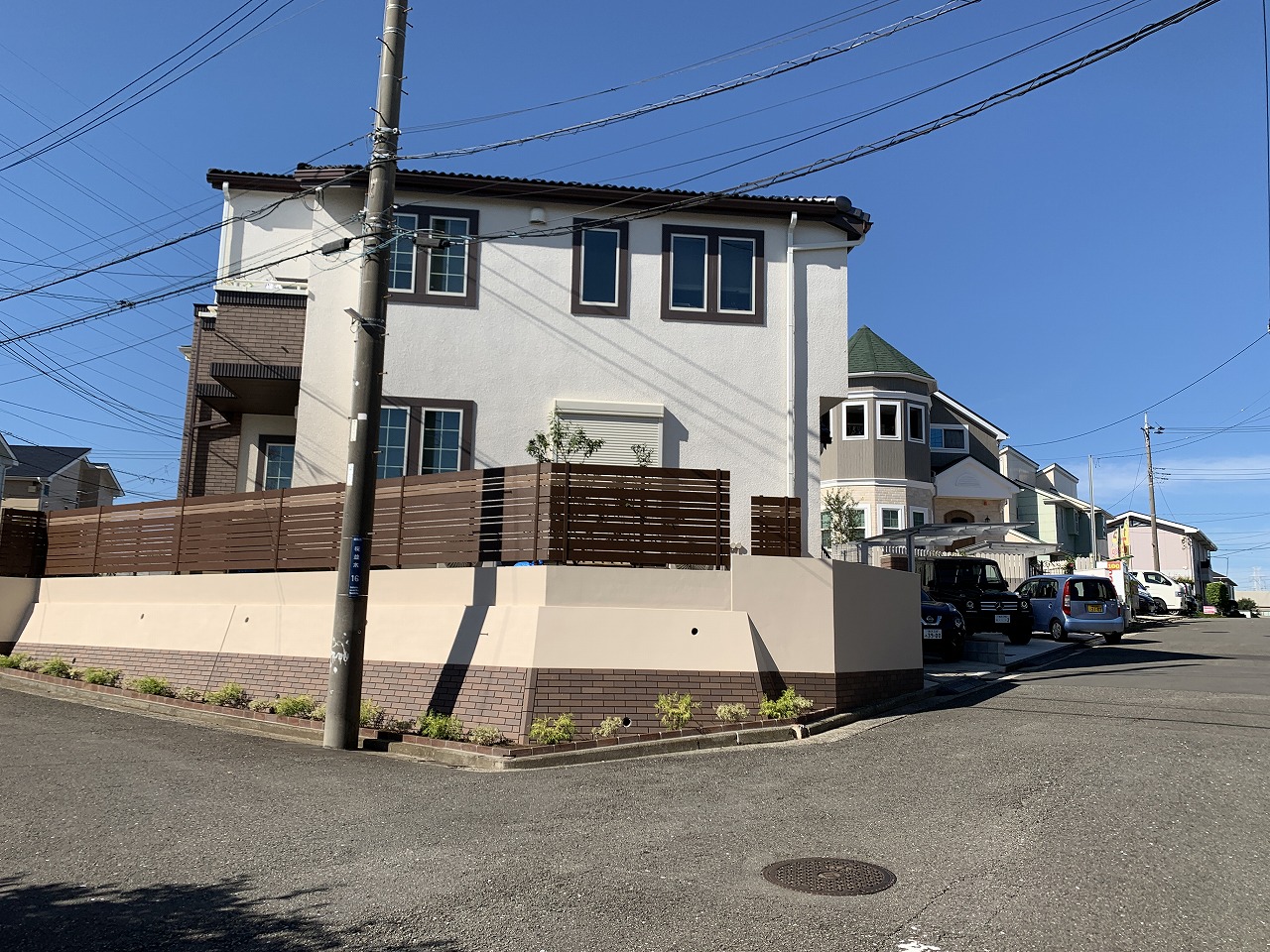なんと、間知石擁壁を塗り壁・タイル・フェンスでおしゃれにリニューアルしました!