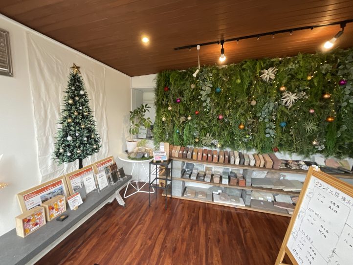 お店に入るとクリスマスツリーとリースたちがお出迎え