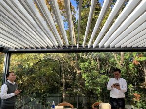 ここからさらにルーバーが片方に収納されて、全開にして空を見ることもできます。