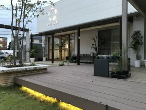 ウッドデッキの下のラインライト、浮遊感も際立っていてかっこいいですね!